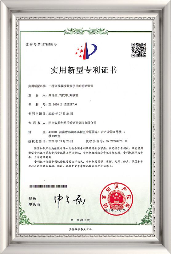 Utility Model of 2020 - A deceleration device that can be used as a rescue device