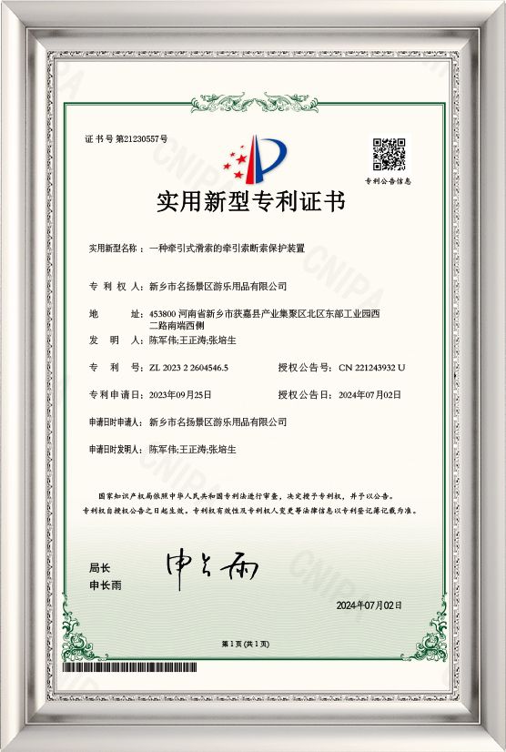 2023-Utility Model--A traction rope breaking protection device for a traction type zip line